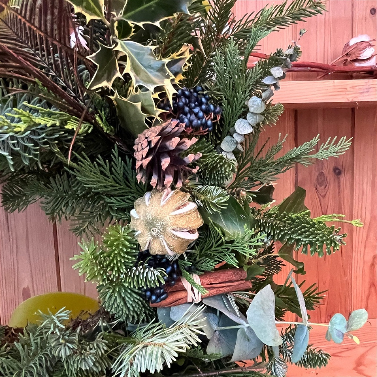 This really is a natural beauty adorned with peacock feathers, limes, pine cones On a bed of various foliage’s including eucalyptus. Each one is hand bound on to a bed of sustainable locally grown foliage.
